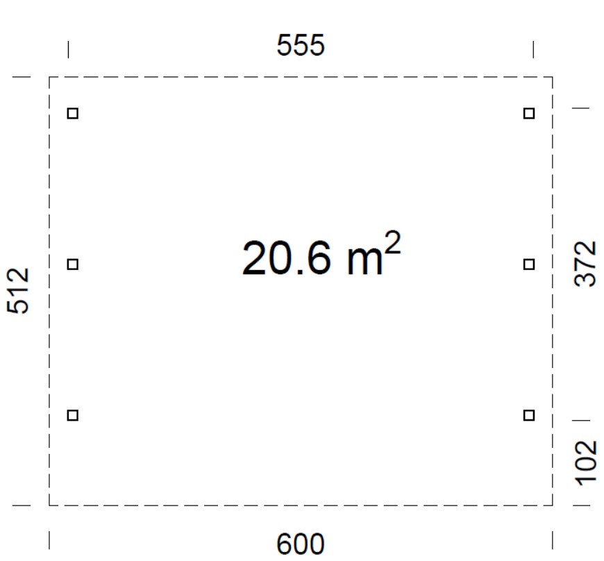 - Montanti: In abete lamellare, 12 x 12 cm