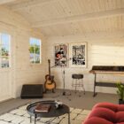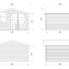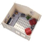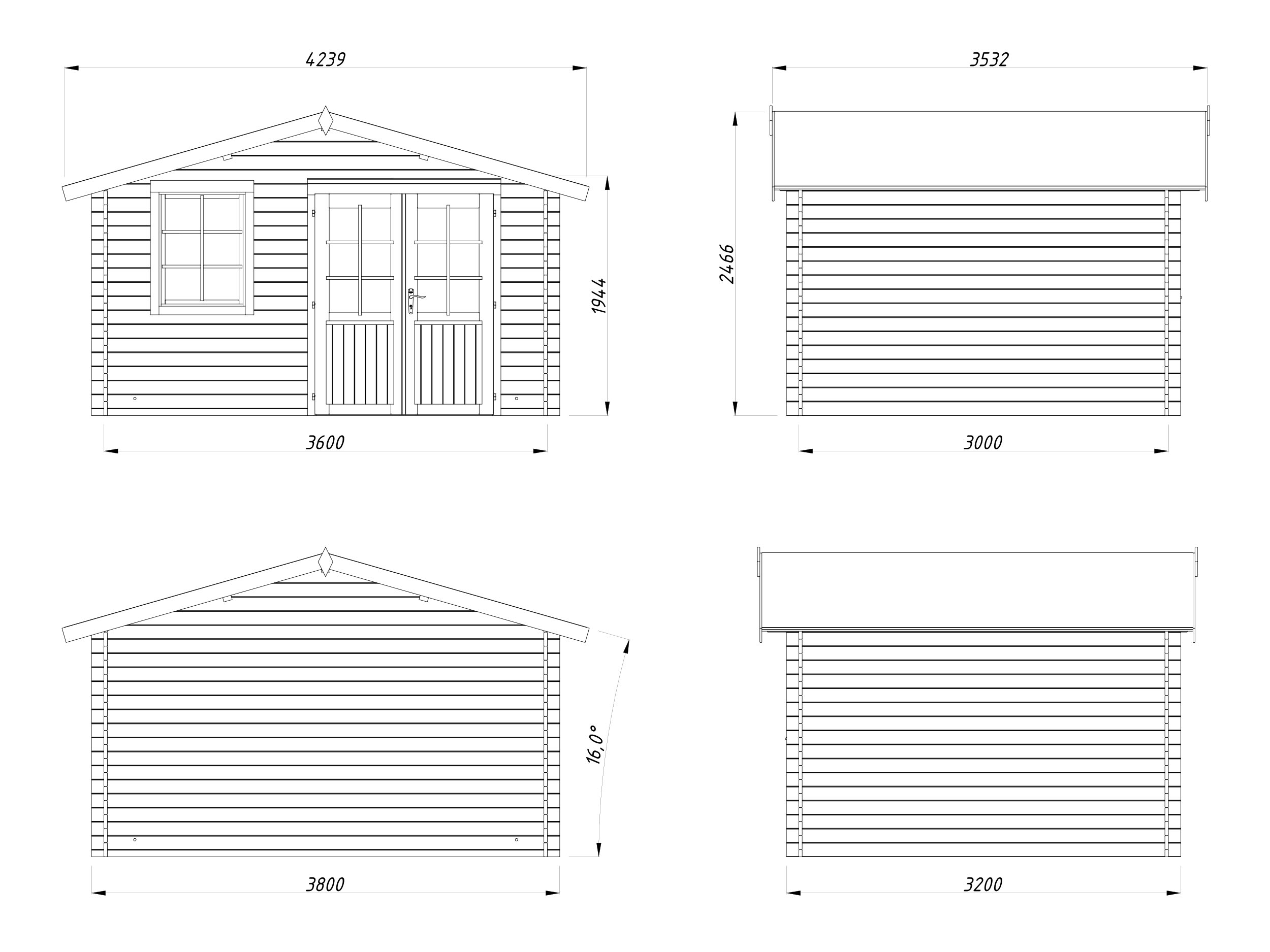 Pavimento: art. nr. 103011, Guaina ardesiata: nr. 3 rotoli, Tegole canadesi: nr. 6 confezioni, Kit grondaia “E”, Impregnante: nr. 3 confezioni