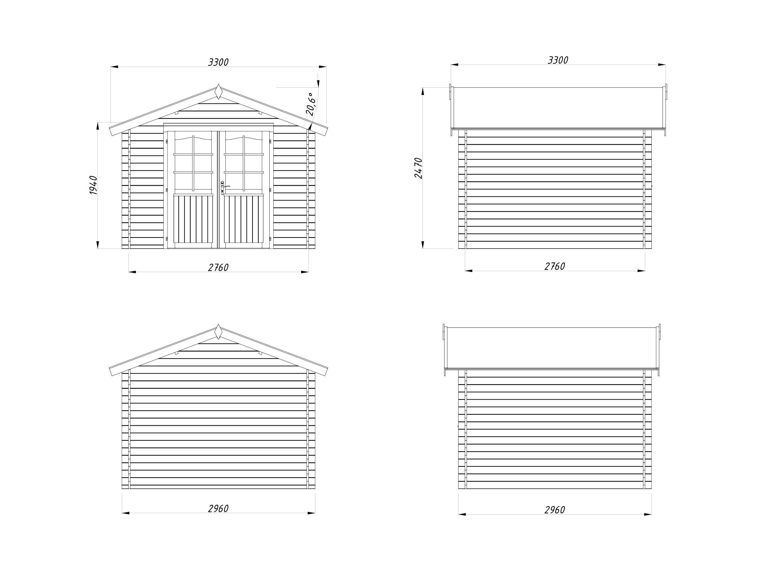 Pavimento: art. nr. 102971, Guaina ardesiata: nr. 3 rotoli, Tegole canadesi: nr. 5 confezioni, Kit grondaia “D”, Impregnante: nr. 3 confezioni