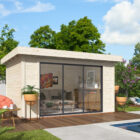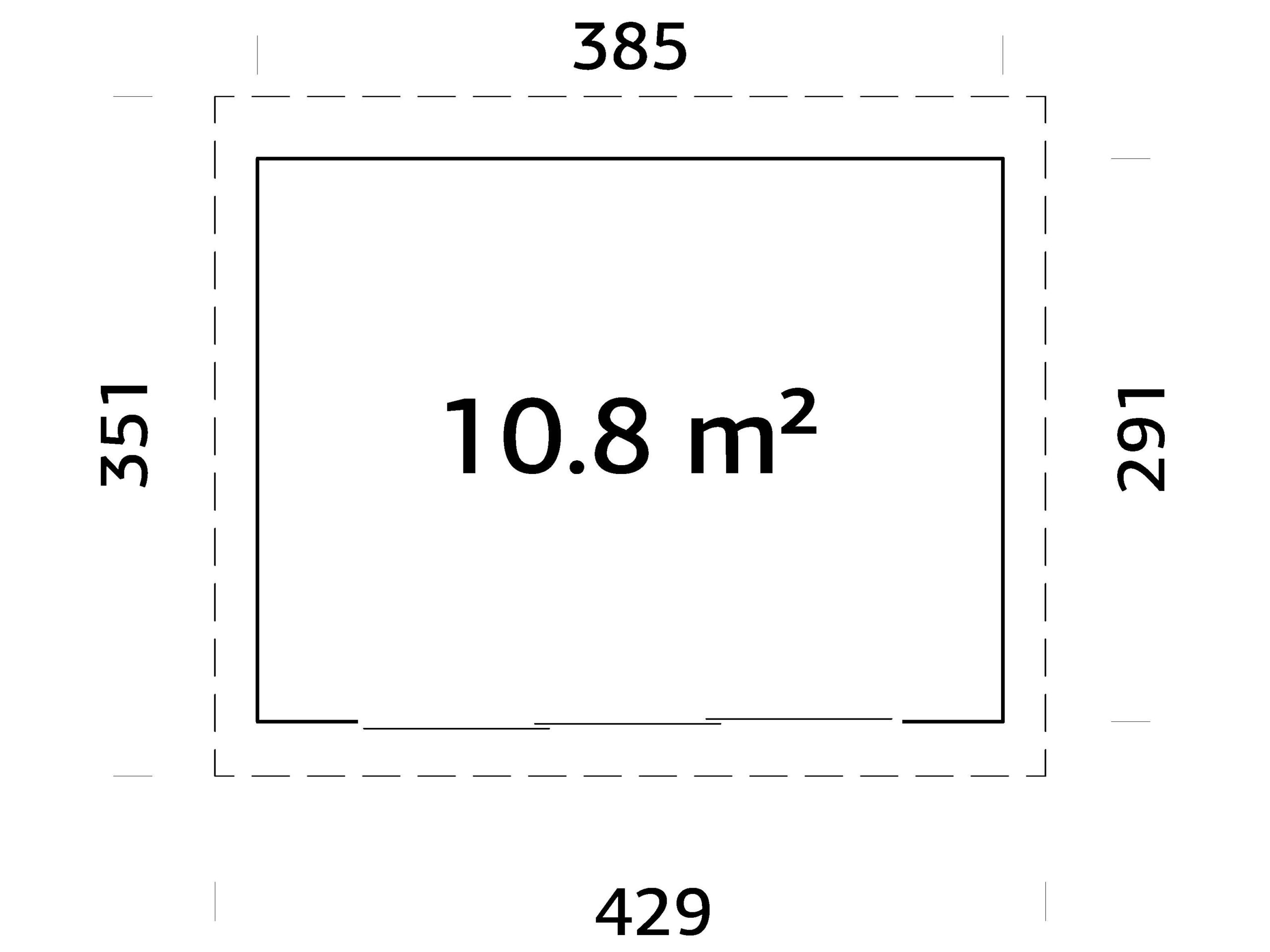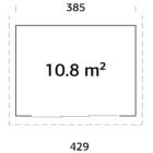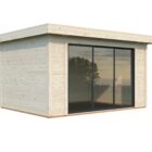 CASETTA LYDIA B 385X291. Abete non trattato. Dimensioni a terra: 385 x 291 cm.