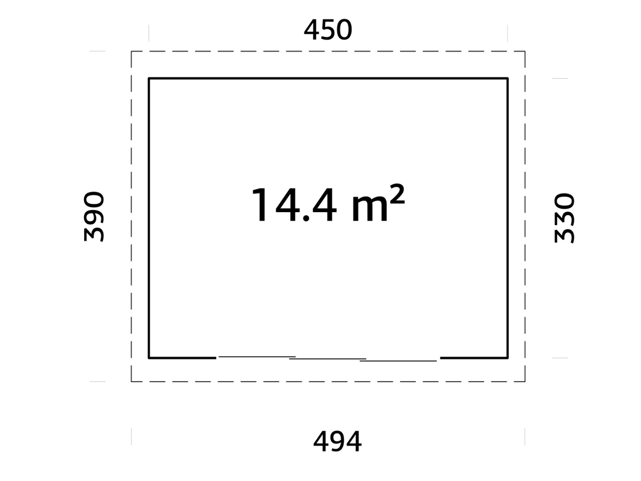 • Dimensioni interne: 444 x 324 cm